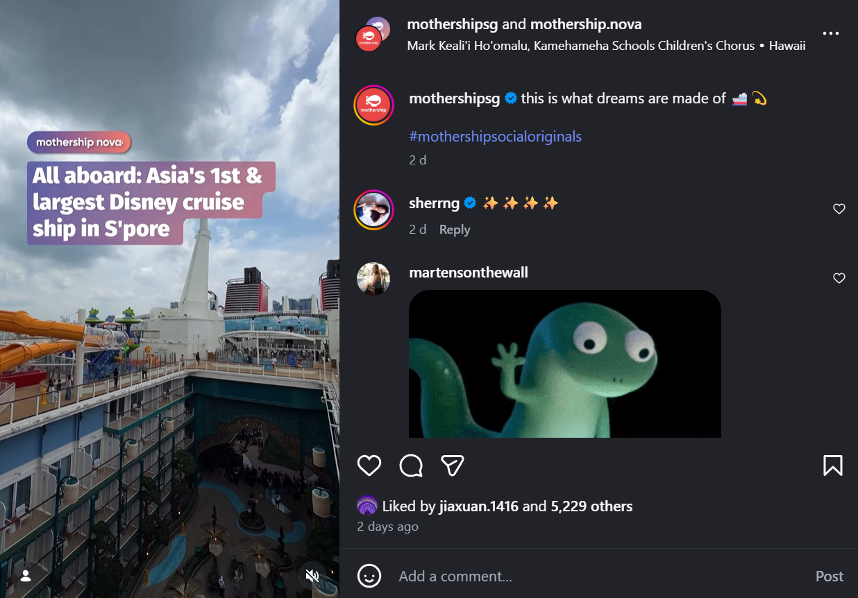 Beyond traditional media coverage, Disney has also invited media outlets, Singapore influencers, and travel creators to preview the ship and share their experiences on platforms such as TikTok, Instagram, and Facebook. These posts allow audiences to see attractions and themed areas before the cruise launches.